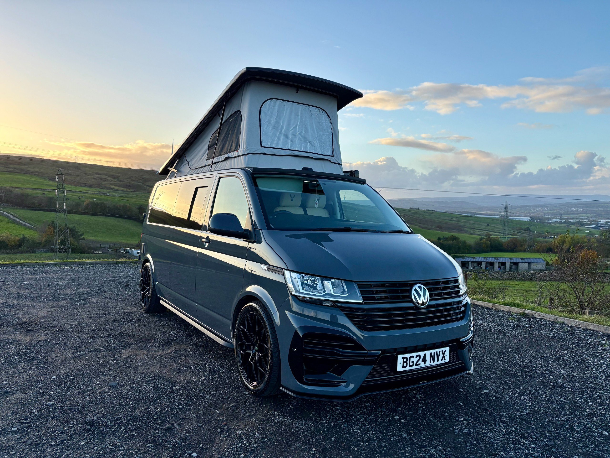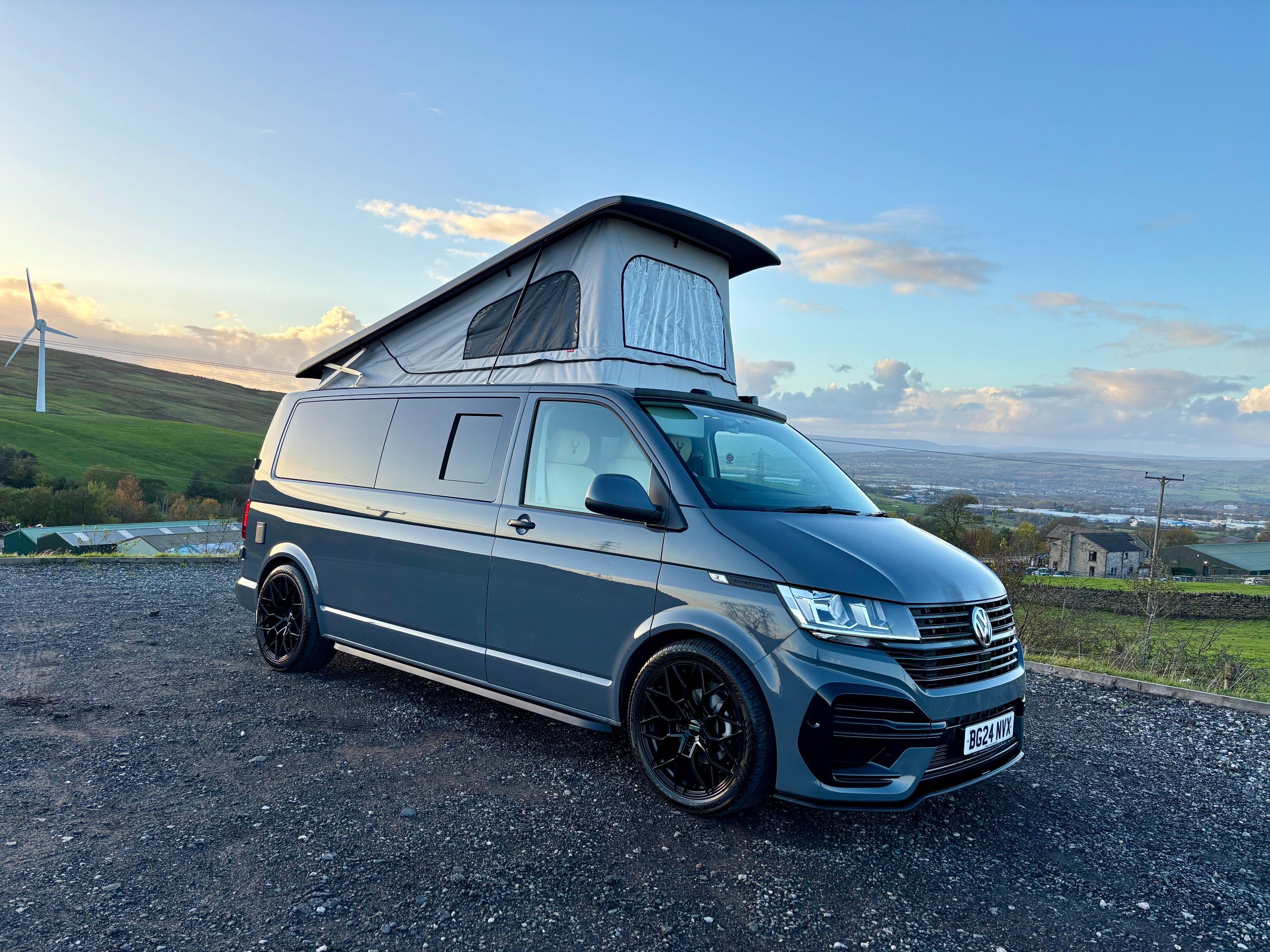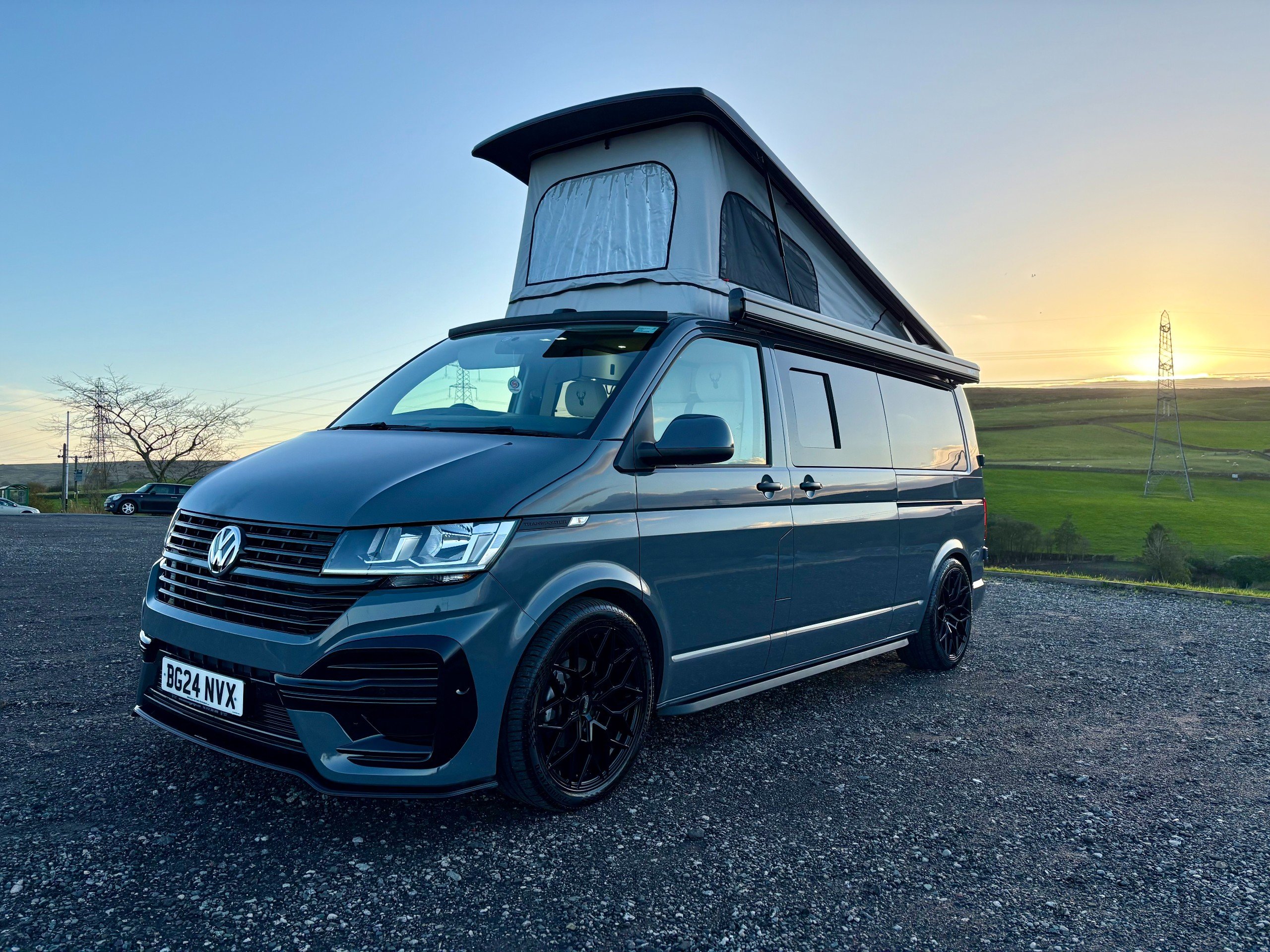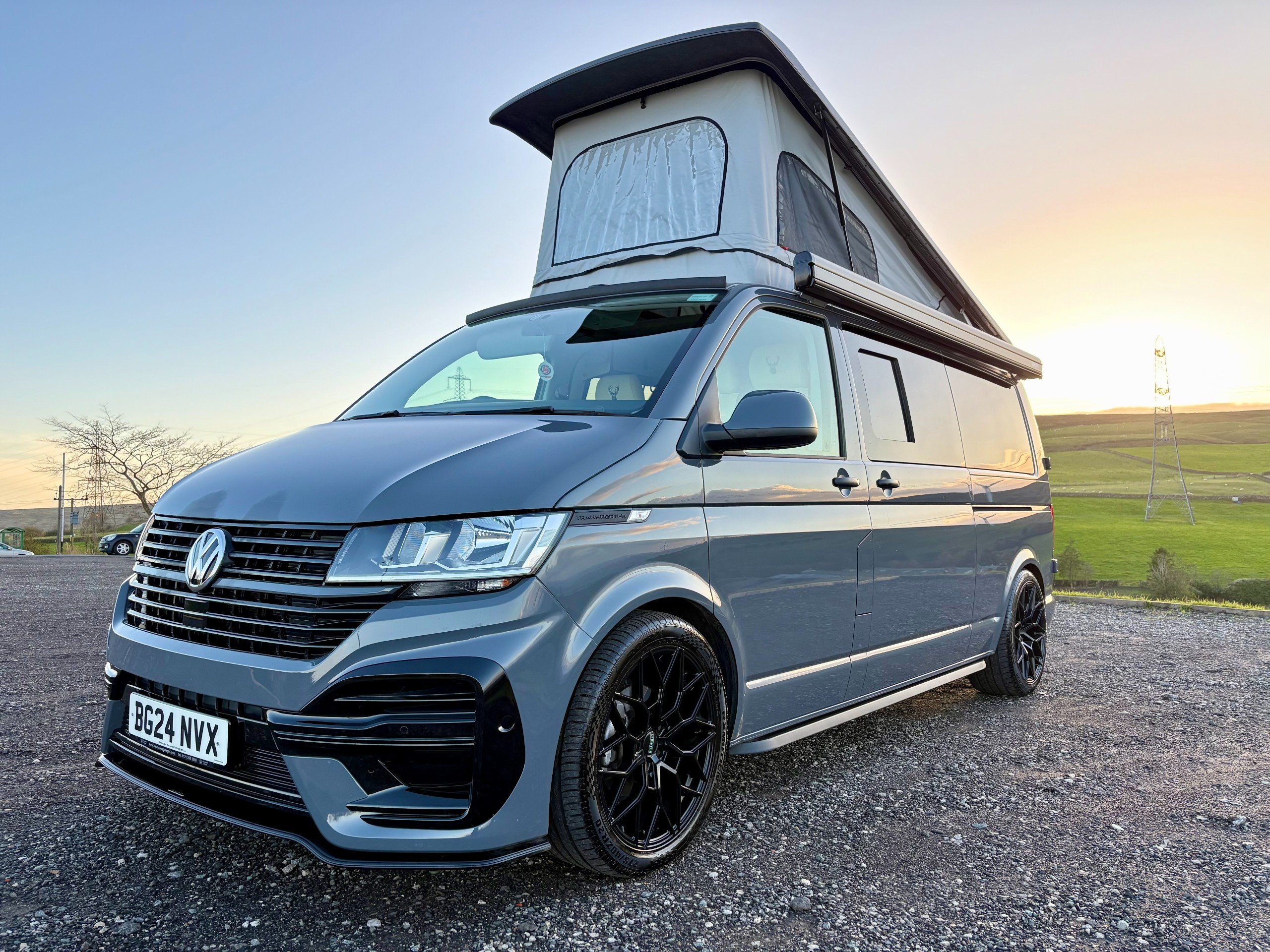 For Sale: 2024 Volkswagen Transporter T6.1 LWB 4 berth campervan. This is a professional conversion completed by us here at Concept Vehicle Conversions Ltd and is being sold on behalf of our customer who is selling to get something a little bigger. The conversion was completed in May 2025 so only 6 months old! Vehicle: • 2024 Volkswagen Transporter T6.1 • Long wheel base •2.0 TDI Diesel T28 • 5000 miles • Grey • 2 keys • Air conditioning • Parking sensors • DAB Radio •Heated Seats •Reverse camera •Apple car play • Bluetooth connectivity • 6 speed manual transmission • HPI clear • Manufacturers warranty still valid Exterior: •Leighton van styling all round - LV-R front bumper, splitter and grill •40 mm lowering springs •Matt black side bars • Mains hook up • 4 privacy glass windows (o/s/f and n/s/f opening, 2 fixed) •Poptop roof in black with grey scenic canvas • 20” Leighton alloy wheels in matt black Interior: • Light weight laminated ply furniture finished in matt cream colour with solid oak worktop and table • Dometic Smev 9222 sink and 2 gas burner hob • 50 litre 12v compressor fridge • 4 berth • Double swivel seat base • LED light bed board in poptop finished with VW badge • M1 tested reclining rock&roll bed with isofix • All seats upholstered in cream vinyl with cream stitching • Curtains on all rear windows • Oak effect vinyl flooring • Fully insulated and sound deadened • Fully carpet lined • Gas safety locker with full gas bottle included • Gas safety certificate • Victron split charger battery charging system • 100AH Leisure battery • Victron 240v mains intelligent battery charger • L.E.D lighting throughout • U.S.B/12v sockets • 2 Mains outlet sockets • Swivel table at door •200w solar panel and Victron controller •Planar diesel heater with smart controller £60,495 **Finance available please ask for a quote** We are located in Burnley, Lancashire Viewings welcome by appointment only Any questions please don’t hesitate to ask -