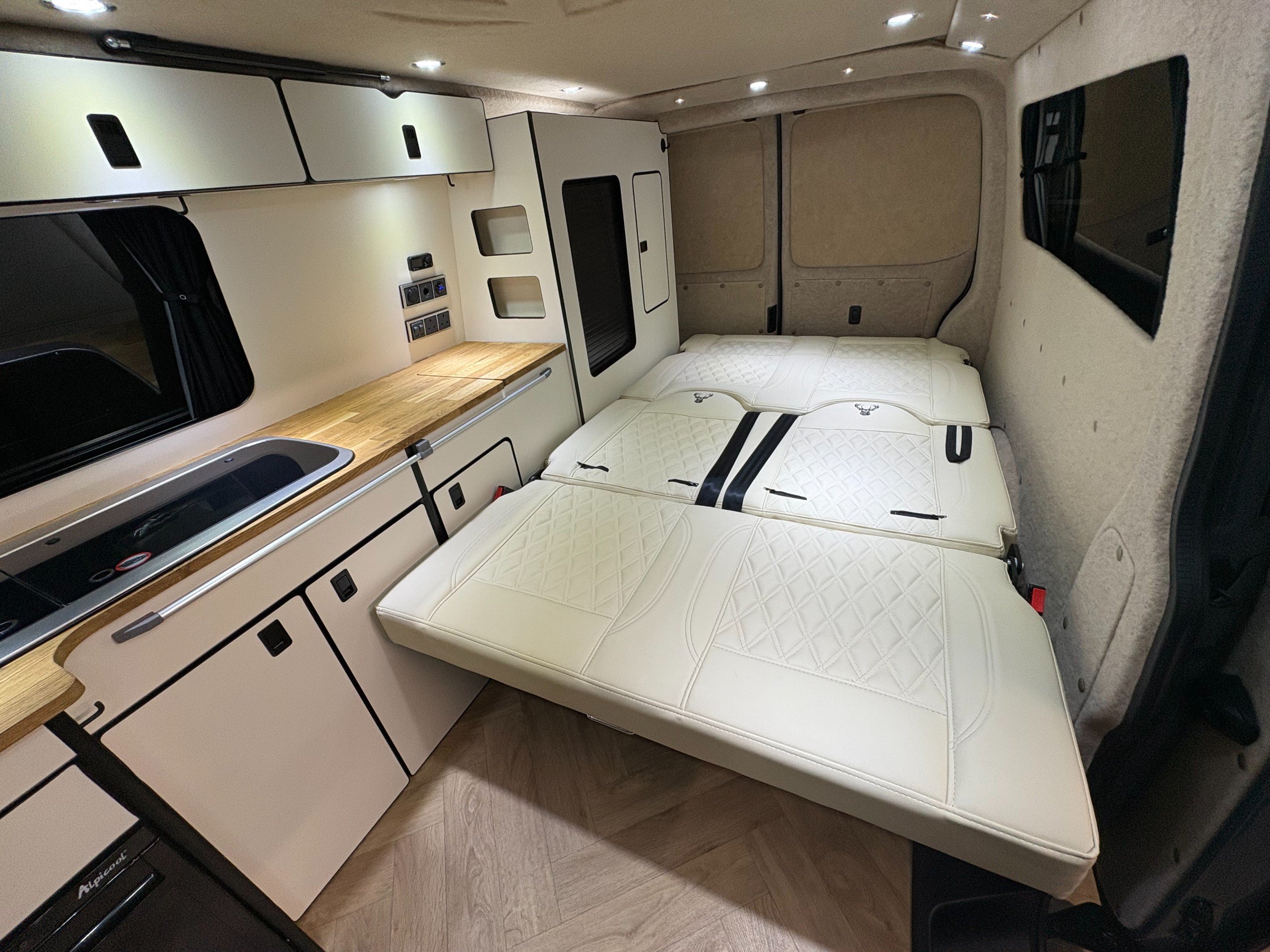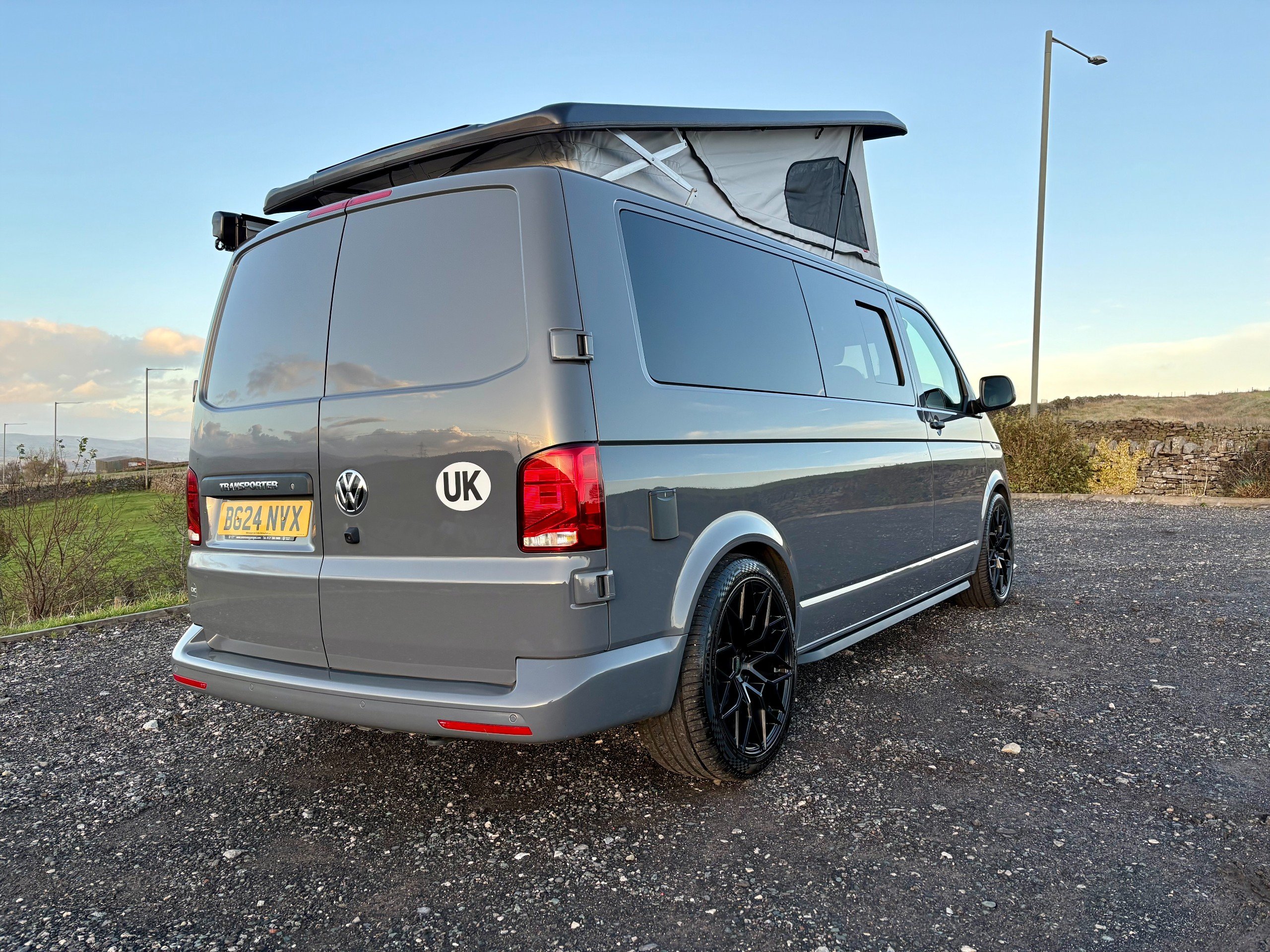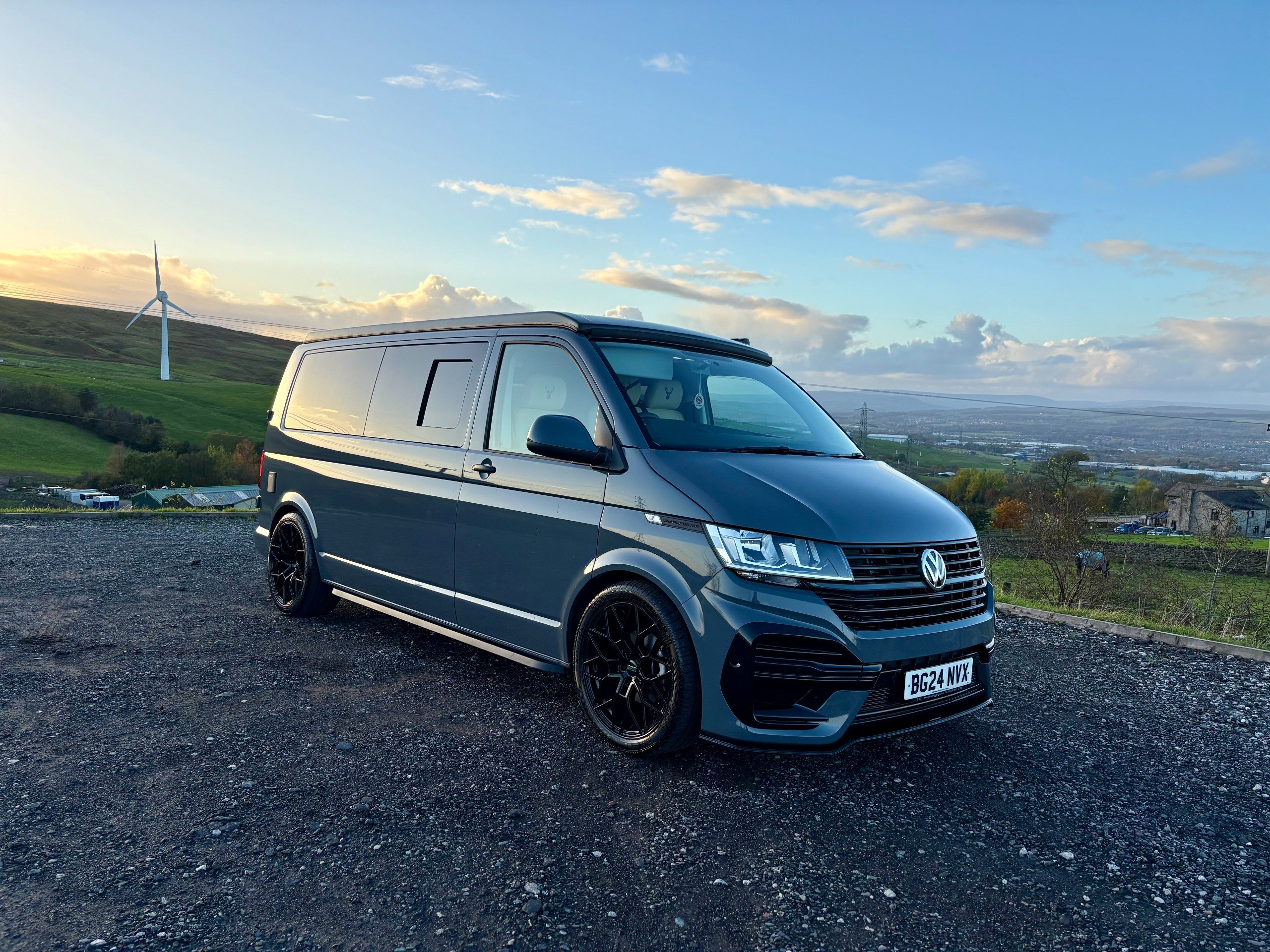 For Sale: 2024 Volkswagen Transporter T6.1 LWB 4 berth campervan. This is a professional conversion completed by us here at Concept Vehicle Conversions Ltd and is being sold on behalf of our customer who is selling to get something a little bigger. The conversion was completed in May 2025 so only 6 months old! Vehicle: • 2024 Volkswagen Transporter T6.1 • Long wheel base •2.0 TDI Diesel T28 • 5000 miles • Grey • 2 keys • Air conditioning • Parking sensors • DAB Radio •Heated Seats •Reverse camera •Apple car play • Bluetooth connectivity • 6 speed manual transmission • HPI clear • Manufacturers warranty still valid Exterior: •Leighton van styling all round - LV-R front bumper, splitter and grill •40 mm lowering springs •Matt black side bars • Mains hook up • 4 privacy glass windows (o/s/f and n/s/f opening, 2 fixed) •Poptop roof in black with grey scenic canvas • 20” Leighton alloy wheels in matt black Interior: • Light weight laminated ply furniture finished in matt cream colour with solid oak worktop and table • Dometic Smev 9222 sink and 2 gas burner hob • 50 litre 12v compressor fridge • 4 berth • Double swivel seat base • LED light bed board in poptop finished with VW badge • M1 tested reclining rock&roll bed with isofix • All seats upholstered in cream vinyl with cream stitching • Curtains on all rear windows • Oak effect vinyl flooring • Fully insulated and sound deadened • Fully carpet lined • Gas safety locker with full gas bottle included • Gas safety certificate • Victron split charger battery charging system • 100AH Leisure battery • Victron 240v mains intelligent battery charger • L.E.D lighting throughout • U.S.B/12v sockets • 2 Mains outlet sockets • Swivel table at door •200w solar panel and Victron controller •Planar diesel heater with smart controller £60,495 **Finance available please ask for a quote** We are located in Burnley, Lancashire Viewings welcome by appointment only Any questions please don’t hesitate to ask -