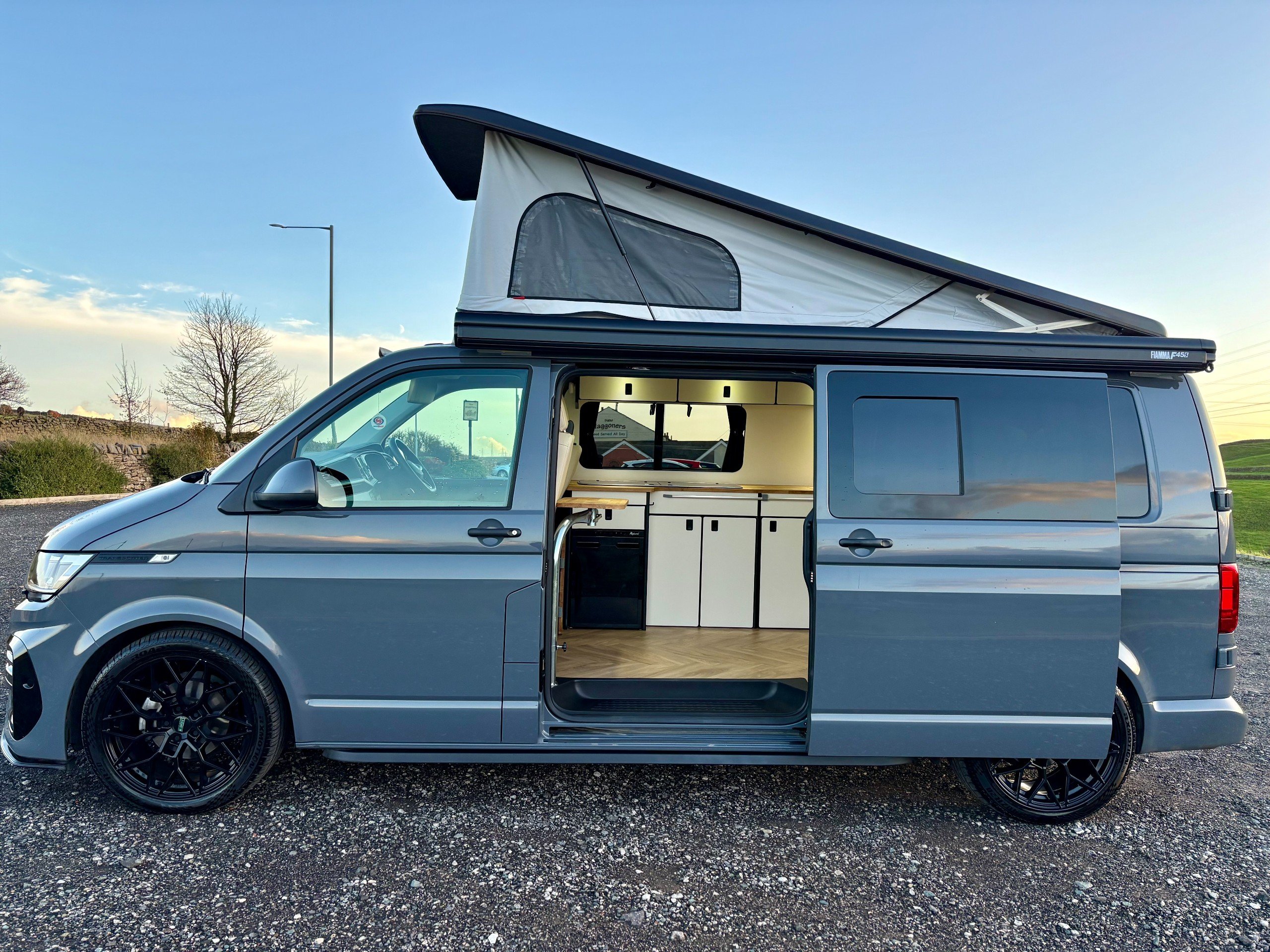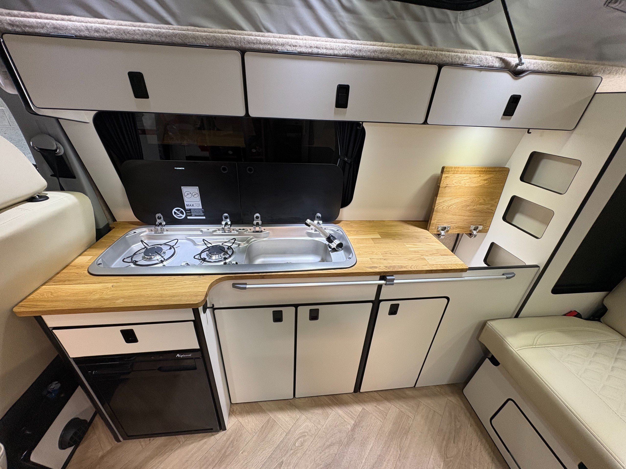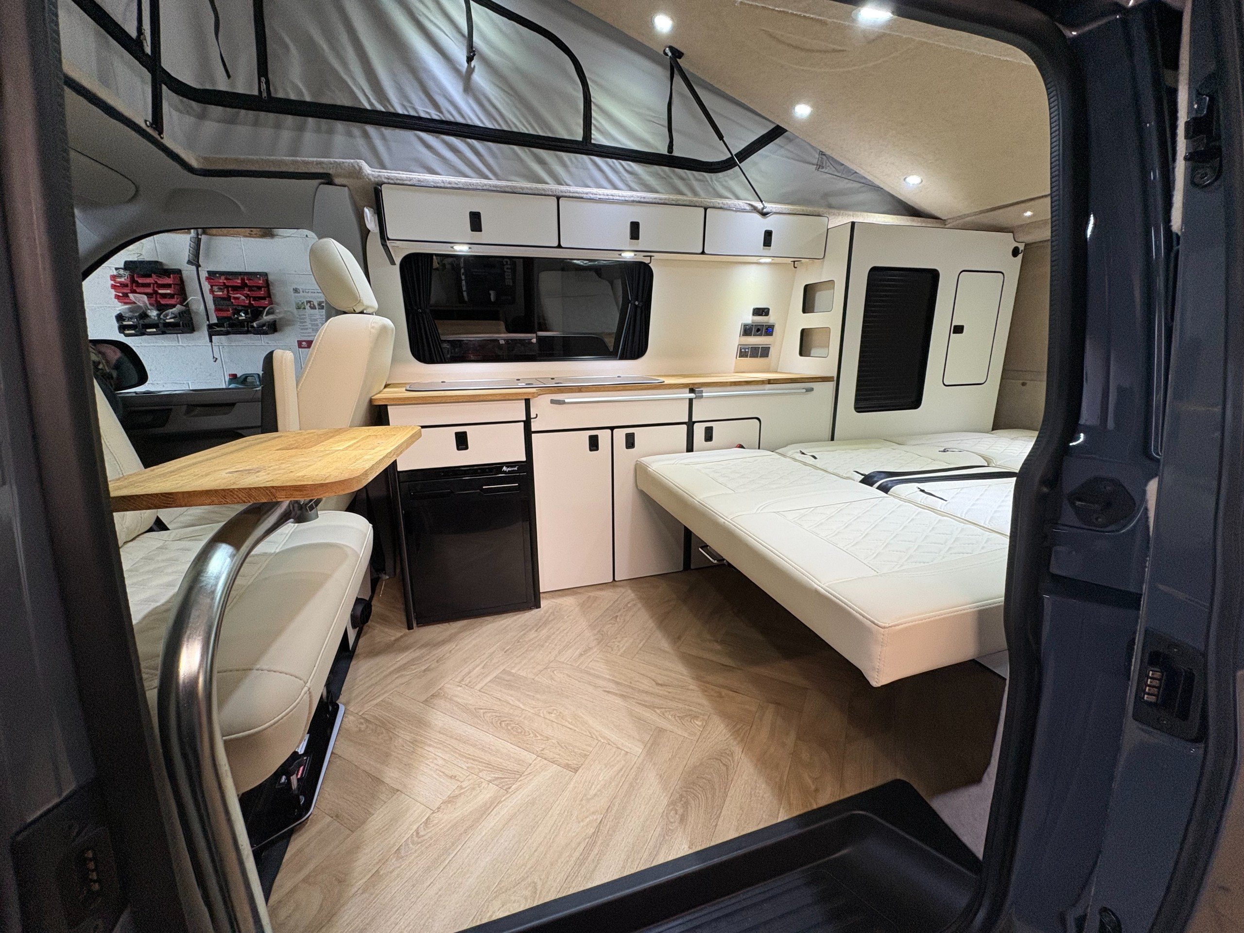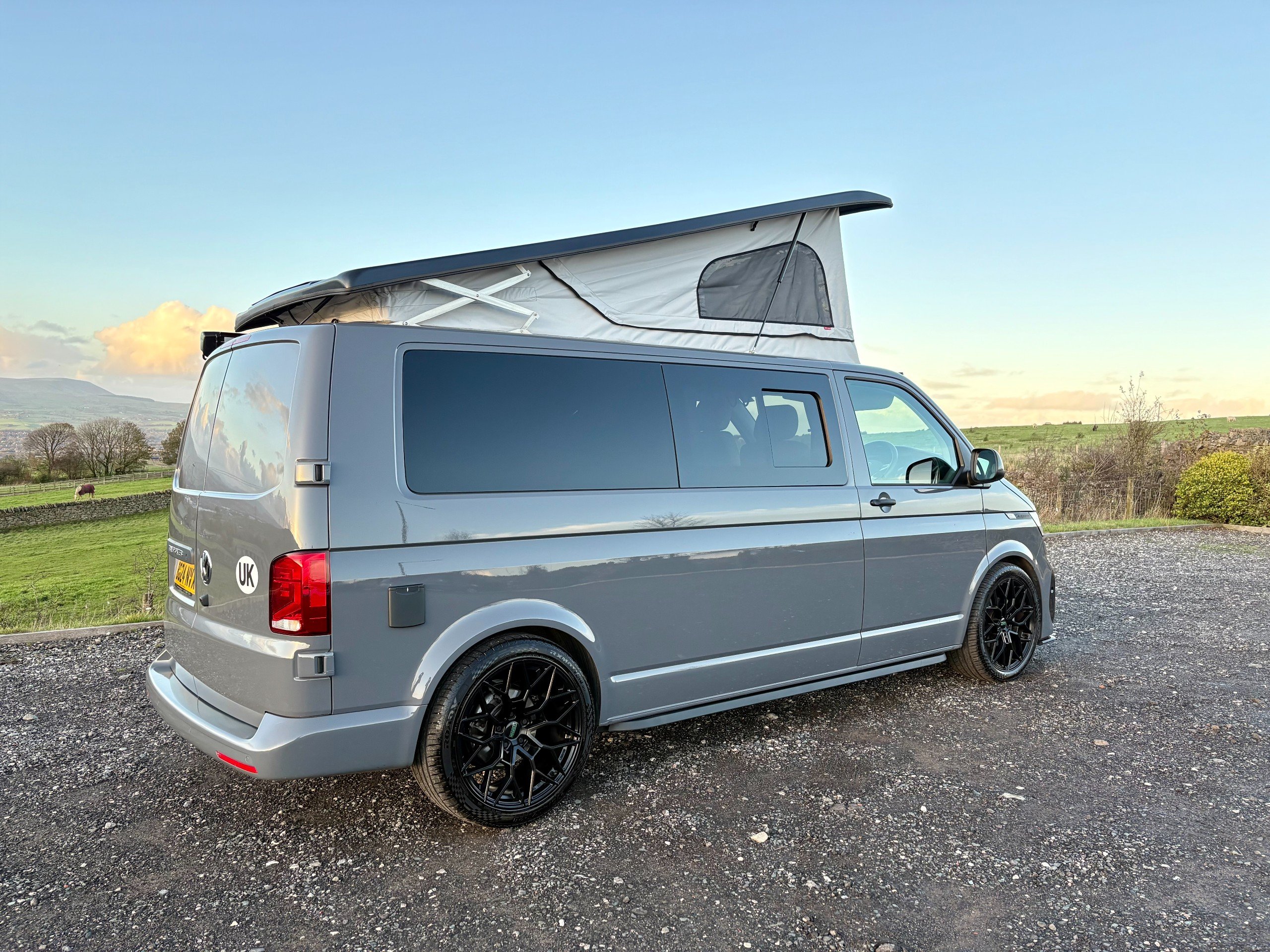 For Sale: 2024 Volkswagen Transporter T6.1 LWB 4 berth campervan. This is a professional conversion completed by us here at Concept Vehicle Conversions Ltd and is being sold on behalf of our customer who is selling to get something a little bigger. The conversion was completed in May 2025 so only 6 months old! Vehicle: • 2024 Volkswagen Transporter T6.1 • Long wheel base •2.0 TDI Diesel T28 • 5000 miles • Grey • 2 keys • Air conditioning • Parking sensors • DAB Radio •Heated Seats •Reverse camera •Apple car play • Bluetooth connectivity • 6 speed manual transmission • HPI clear • Manufacturers warranty still valid Exterior: •Leighton van styling all round - LV-R front bumper, splitter and grill •40 mm lowering springs •Matt black side bars • Mains hook up • 4 privacy glass windows (o/s/f and n/s/f opening, 2 fixed) •Poptop roof in black with grey scenic canvas • 20” Leighton alloy wheels in matt black Interior: • Light weight laminated ply furniture finished in matt cream colour with solid oak worktop and table • Dometic Smev 9222 sink and 2 gas burner hob • 50 litre 12v compressor fridge • 4 berth • Double swivel seat base • LED light bed board in poptop finished with VW badge • M1 tested reclining rock&roll bed with isofix • All seats upholstered in cream vinyl with cream stitching • Curtains on all rear windows • Oak effect vinyl flooring • Fully insulated and sound deadened • Fully carpet lined • Gas safety locker with full gas bottle included • Gas safety certificate • Victron split charger battery charging system • 100AH Leisure battery • Victron 240v mains intelligent battery charger • L.E.D lighting throughout • U.S.B/12v sockets • 2 Mains outlet sockets • Swivel table at door •200w solar panel and Victron controller •Planar diesel heater with smart controller £60,495 **Finance available please ask for a quote** We are located in Burnley, Lancashire Viewings welcome by appointment only Any questions please don’t hesitate to ask -